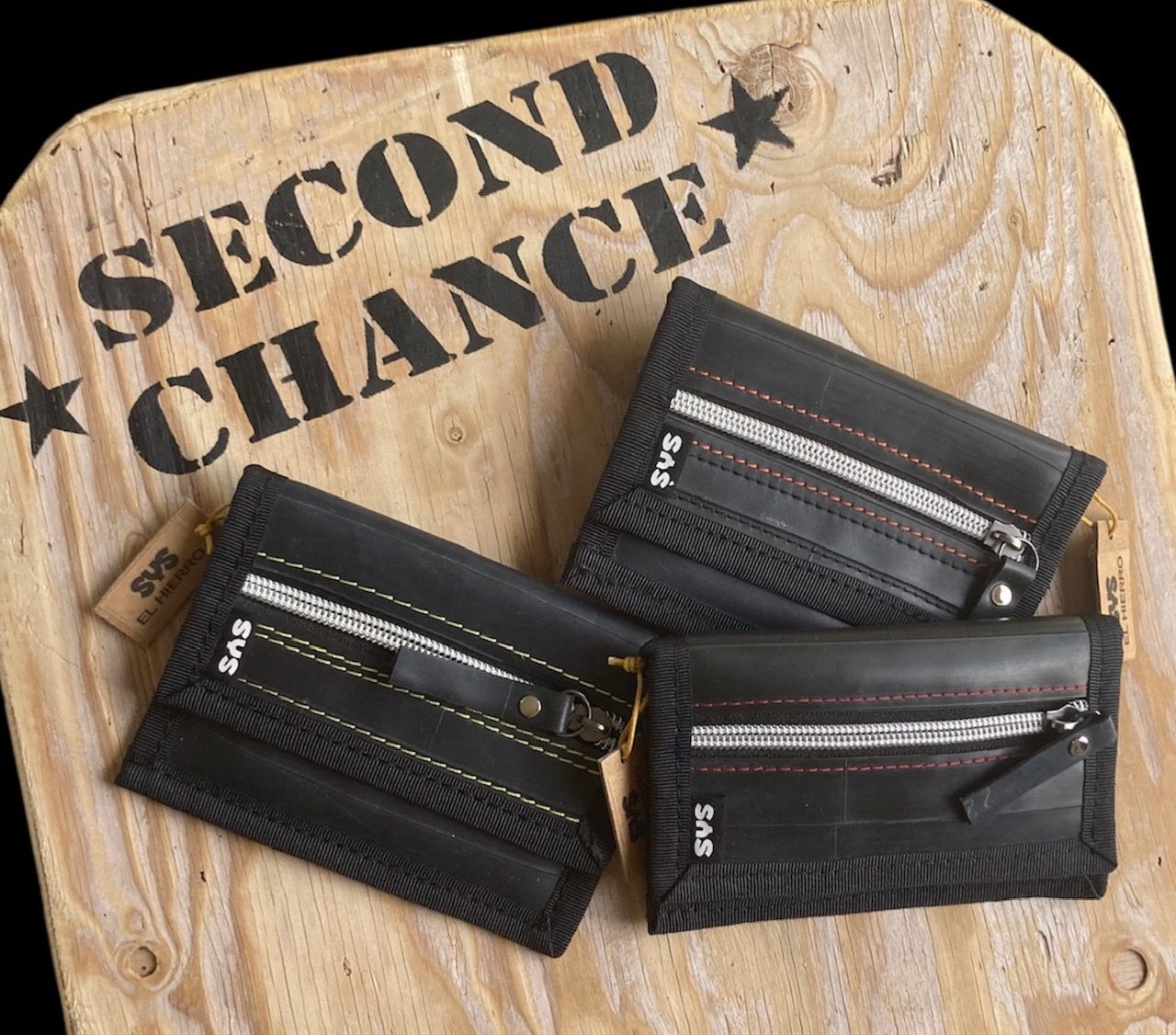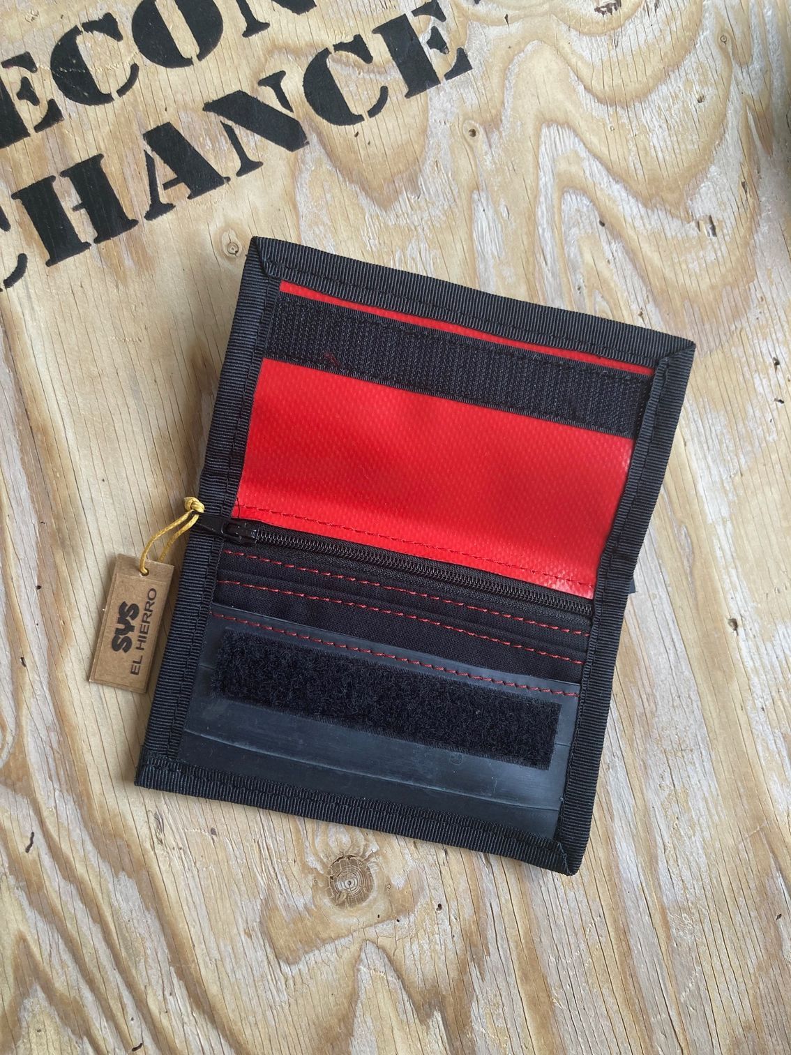 ...aus plattgefahrenem Fahrradschlauch. Neues kleineres Model mit 2 Kartenfächer und 2 geräumige Fächer, mit Reissverschluss. Der Schlauch-Geldi wird mit einem Klettverschluss sicher verschlossen. Jedes Teil ist ein Unikat - mal mit SCHWALBE Logo oder einem Flicker..... Interesse? - schickt uns einfach ein Mail.
